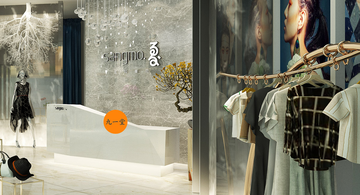 桑莫.夏是四川省本土女裝品牌,在樂(lè)山市已有多家分店,服裝多為韓式款式為主,自由隨意,個(gè)性、百搭,老店裝飾設(shè)計(jì)風(fēng)格多以田園風(fēng)結(jié)合當(dāng)下的后現(xiàn)代風(fēng)為主。缺乏時(shí)尚的氣息,雖然經(jīng)營(yíng)多年后但是品牌起色不是很大,迫切希望品牌再次包裝和亮相,此次新項(xiàng)目地址選在峨眉山最新的商業(yè)地產(chǎn)項(xiàng)目,憑借西南最大沃爾瑪?shù)拿麣獾纳虉?chǎng)再次亮相展現(xiàn)自己的品牌。我們九韻一雅堂承接到甲方商業(yè)空間設(shè)計(jì)的委托后,從品牌定位,產(chǎn)品調(diào)性,消費(fèi)群體定位, 品牌形象,VI設(shè)計(jì),店面升級(jí)等服務(wù)板塊提高品牌形象,品牌的升級(jí)與重塑,商業(yè)空間設(shè)計(jì)的中心服務(wù)優(yōu)勢(shì),怎樣讓桑莫.夏品牌更時(shí)尚、更年輕化是我們商業(yè)空間設(shè)計(jì)考慮的要點(diǎn),我們?cè)跇?biāo)志上注入英文構(gòu)思,放進(jìn)空間,中心以“夏”字結(jié)合書(shū)法統(tǒng)籌文化來(lái)創(chuàng)造,書(shū)法結(jié)合英文的標(biāo)志調(diào)配改造,再空間既有中國(guó)傳統(tǒng)文化又兼具時(shí)尚。空間把原來(lái)的原生態(tài)樹(shù)換造型后刷白倒掛,和黑色藝術(shù)玻璃形成鮮明的材質(zhì)對(duì)比,讓傳統(tǒng)磕碰時(shí)尚,保留了客戶(hù)原來(lái)店想要的天然,再生態(tài)再創(chuàng)造。